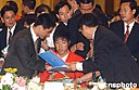 吴敏霞为体育迷签名留念