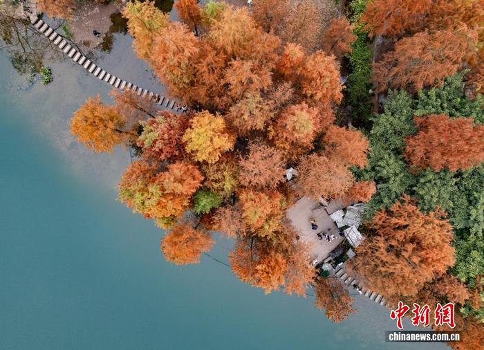 成都升仙湖公园水杉林染“红妆”引游人