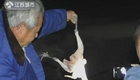 男子发现鸭子被冻湖面 跳湖破冰救援